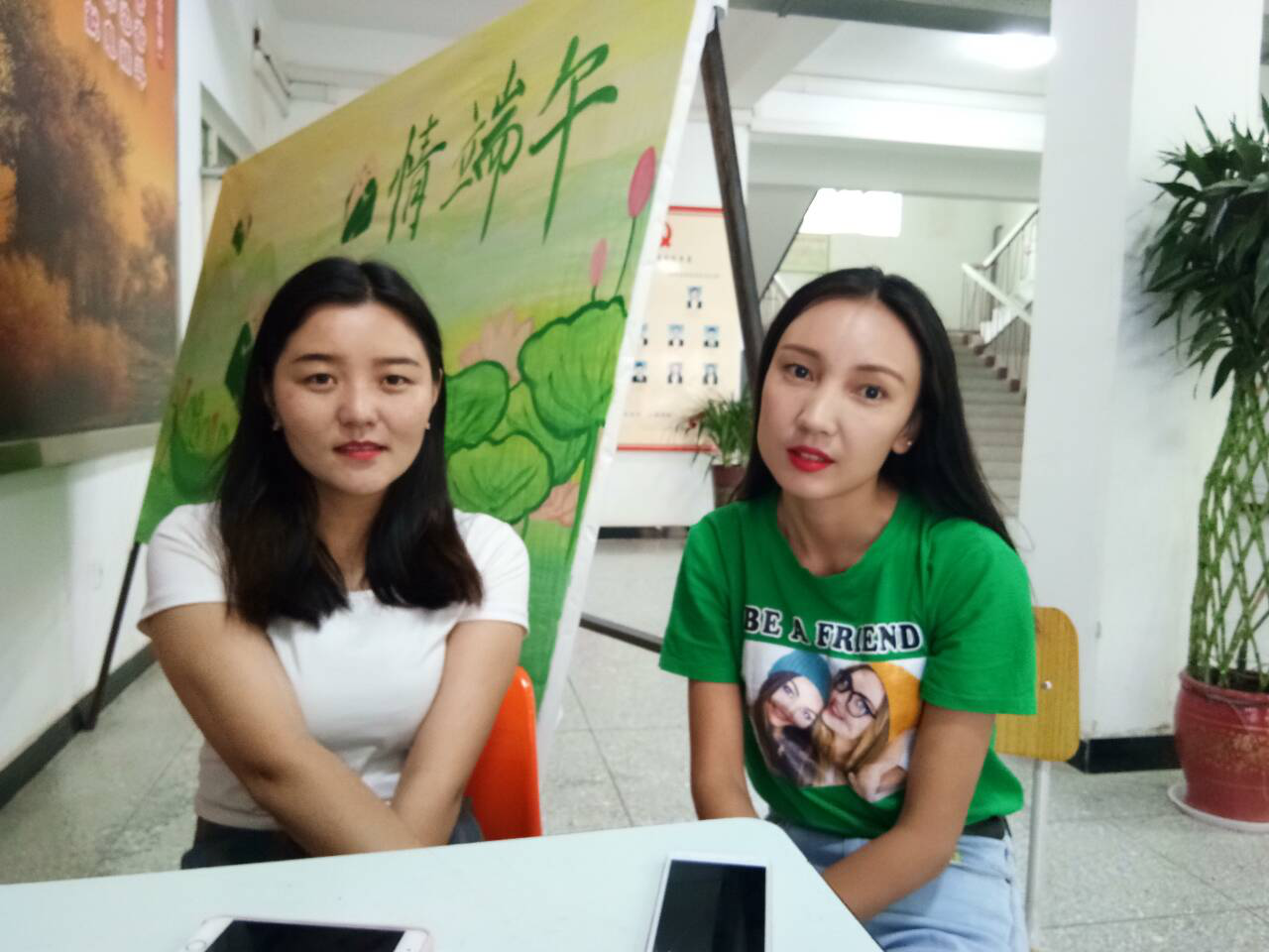 农经19-1班长马合帕丽(左)与团支书阿尔祖古丽(右)