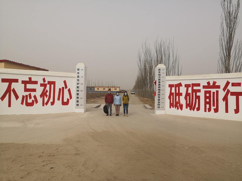 3月28至29日,服务团队在何良军博士带领下,团队成员王时伟副教授和周小玲博士,赴阿克苏地区库车裕万家畜禽养殖农民专业合作社、阿拉尔六团驴养殖合作社开展科技服务。