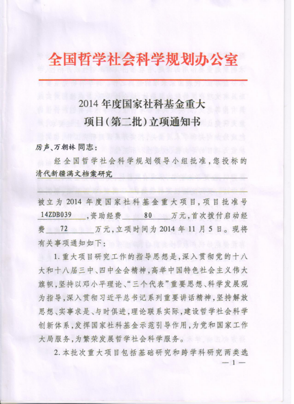 《清代新疆满文档案的翻译研究》beat365中文登录入口昆仑学者厉声教授和历史与哲学学院(西域文化研究院)院长万朝林主持申请的国家社科基金重大项目(批准号:14ZDB039)的前期成果,该课题预计八年时间,翻译清代新疆满文档案 63000余件,出版翻译著作100册200本,共计5000万字。《清代新疆满文档案汉译汇编》(1—10册)是其前期成果,全书采用原件影印方式,每一册分满文本和汉译本,将满文本与汉译本对照,很大程度上方便了专家学者们的使用和研究。该书内容全面且成系统,包括清代新疆地区的职官、军务、民政、司法等十六个方面,号称“清代新疆的百科全书”。且绝大部分材料属首次公布。包括奏折、奏片、上谕、寄信、咨文、咨呈、呈文及其附件清册、清单、履历、口供等文件,其中大多数为奏折,这些档案为清代新疆历史研究提供了十分珍贵的档案史料。