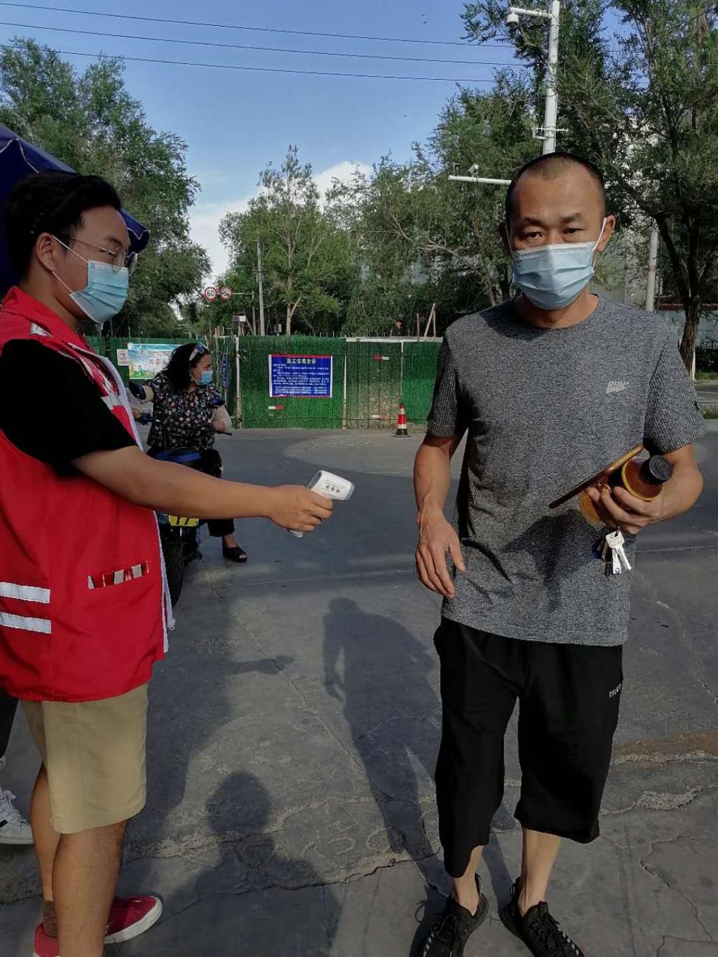 团队成员在克拉玛依参加社区疫情防控体温测量工作