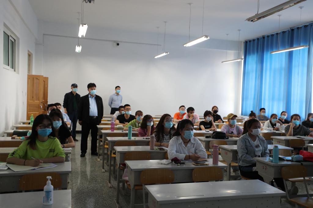 为确保疫情防控期间开学复课教学秩序,保证线上线下教学的有机衔接,保障教学质量和教学效果,党委副书记、校长张传辉,党委常委、副校长石长青,带领教务处、人事处、学生处人员,来到各教学楼、实验室等教学一线,对开学复课第一天师生上课到位、教学硬件准备、教学设备运行、线上线下教学过渡衔接、课堂教学状态、常态化疫情防控等工作进行全面细致检查。