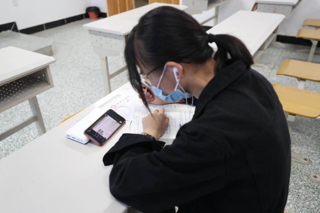 物联网2019级韩璐宇的开学复课第一课,是在备用教室通过上网课的方式进行学习的。“这种线上线下相结合的上课方式,是我想象中最好的教育方式,没想到真的实现了,这样与时代共进的感觉非常棒。”韩璐宇在上完课时说。