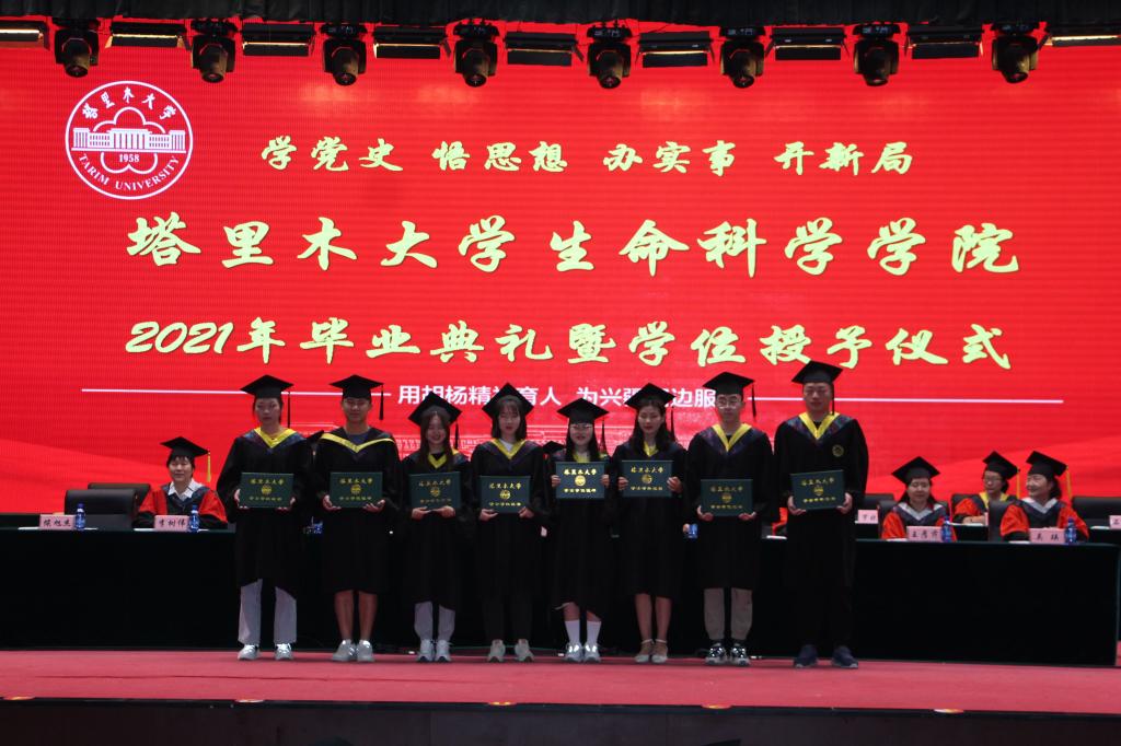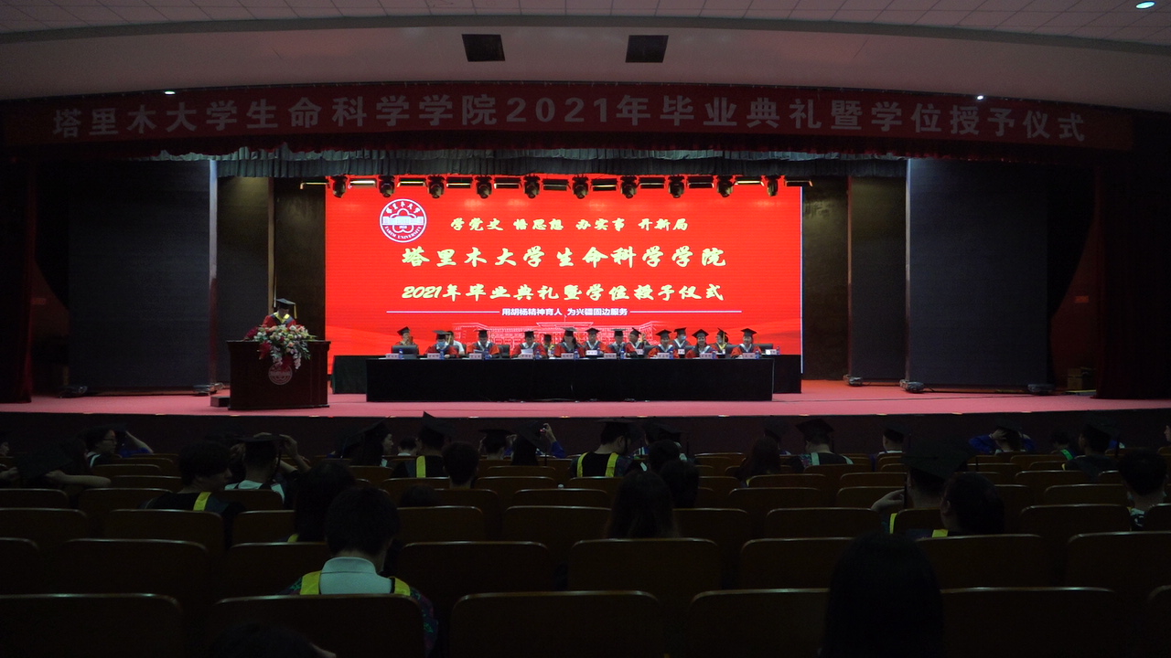 学院院长万传星宣读了《关于生科院2021年硕士、学士学位授予的决定》。学位委员为毕业生颁发了学位证书并扶正流苏。学院副院长侯旭杰宣读了获得优秀毕业生名单和考取硕士研究生学生名单。学院副院长慕自新宣读了就业“自强之星”毕业生和班集体名单、2021届毕业班校友联络员名单。与会领导为他们颁发了证书。