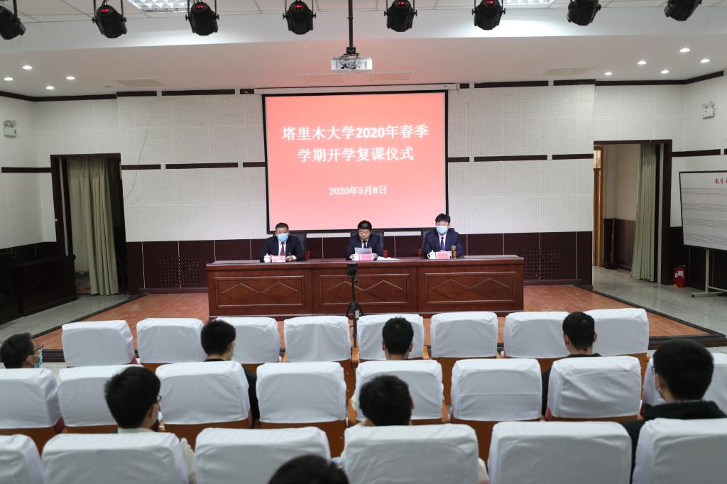 “欢迎同学们回家,回到你们朝思暮想的塔大,回到让你们和家人放心的干净无‘疫’的塔大!经过了本次抗疫,同学们会有更多的体验和感受、更大的收获和成长,以及更深的思考和领悟。”仪式上,赵光辉代表学校党委欢迎同学们返校复课,和同学们交流了两点体会,“什么是中国共产党领导下的中国力量、中国精神、中国效率?什么是中国共产党领导下的塔大担当、胡杨精神、最美塔大?”