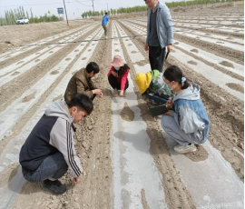 4月27日,在第三师44团、51团、53团的棉花地里,beat365植物科学学院王冀川教授带领的“农业现代化种植”科技特派员服务团队,围绕新技术示范点的棉花苗期田间管理,对科技示范户的有膜棉田、无膜棉田及“滴水出苗”棉田的出苗现状进行调查,针对低温、大风天气造成的棉田出苗慢、缺苗重、苗势弱等情况进行了现场技术指导。对无膜棉和“滴水出苗”棉田前期管理的关键技术进行了具体安排,强调早查苗补苗、早护土、早中耕除草、测封土、少灌水以及早滴蕾花水等措施的重要性,并对与三师农科所联合开展的降解膜、强筋膜试验地进行了技术指导。同时,团队来到“双膜小拱”甜瓜优质高效栽培技术示范基地,针对“湘翠”甜瓜的苗期管理、平播水肥一体化创新技术开展了探讨,制定具体的实施方案。对22连的香梨“飞喷”授粉试验田进行了坐果率的调查。