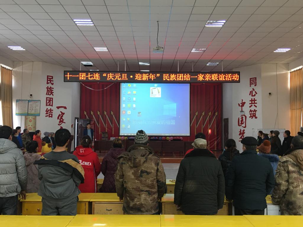 12月30日下午,十一团七连连部大院人头攒动、热闹非凡,“庆元旦·迎新年”民族团结一家亲联谊活动在这里火热进行。