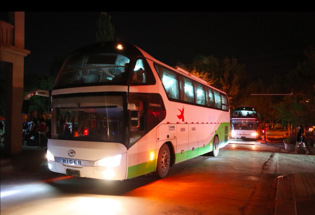 2020年4月23日晚上10:00,疆外返校学生乘坐大巴车,来到阿拉尔市各宾馆休息。
