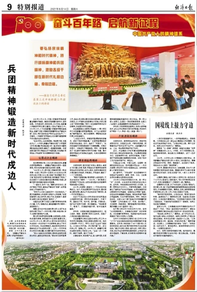 位于第八师石河子市的石河子大学,坚持“以兵团精神育人,为维稳戍边服务”的办学特色,为兵团履行职责使命、促进地方经济社会发展提供了智力支持和人才保障。
