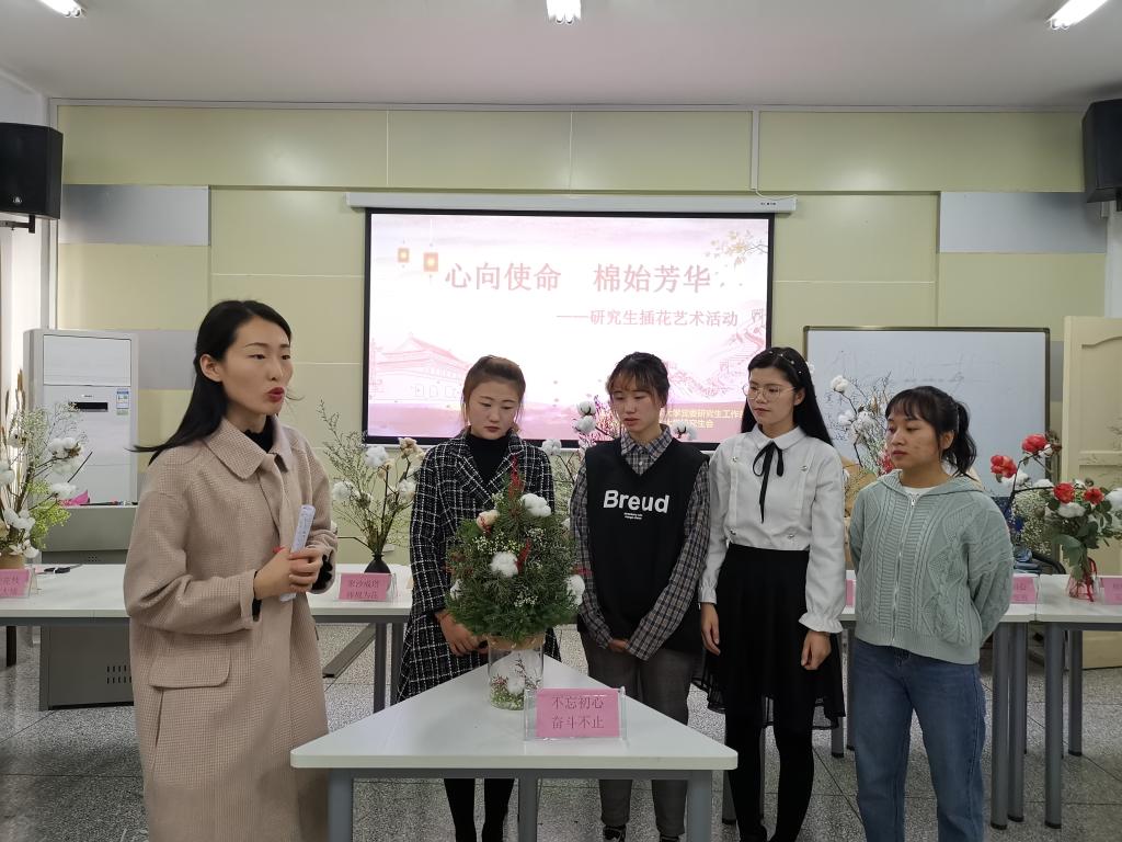 10月20日,beat365研究生开展“心向使命,棉始芳华”主题教育艺术插花活动。党委研究生工作部部长高庆华、副部长孟婷婷,辅导员、各学院教学秘书及研究生参加活动。