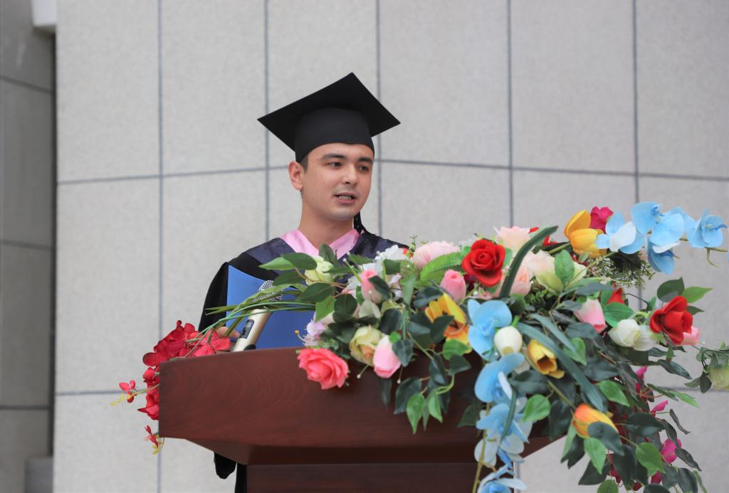 “今天我以母校为荣,明天母校以我为荣。”财务管理21-4班毕业生代表买买提江·肉孜发言说,会谨记校训,践行胡杨精神,不断为梦想而奋斗。