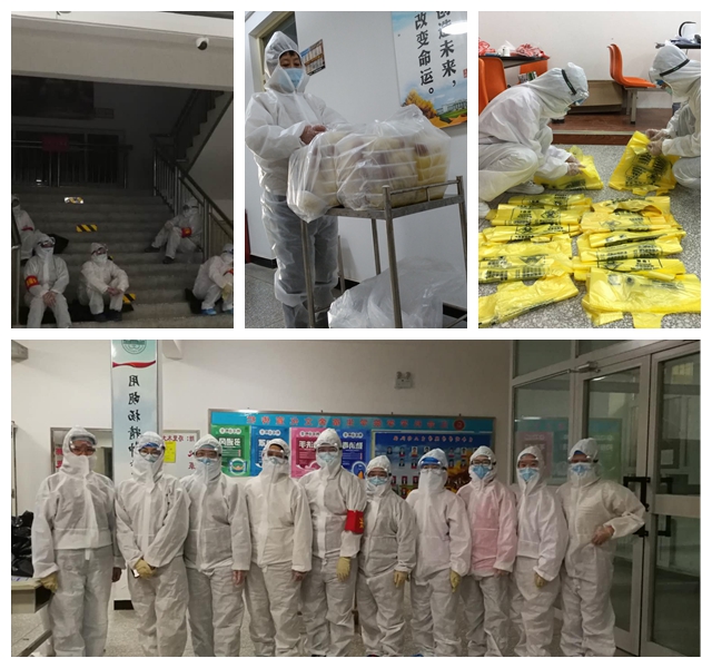 和同学们在一起的时光,也曾因通宵等待她们回到宿舍楼身心疲惫,防护服密不透风,护目镜上捂出的雾也频频遮住视线,想听清学生的声音我们就几个人之间互相大声传话,等接完学生嗓子都喊哑了。老教师陈新萍和张剑云和年轻老师一起,直到把所有学生都安顿好;每日还要拎着几十份码得整整齐齐、沉甸甸的一日三餐爬高楼。有的同学想回到自己原来的宿舍住,王彦芹、许倩两位老师就耐心细致地与学生谈心、做工作。