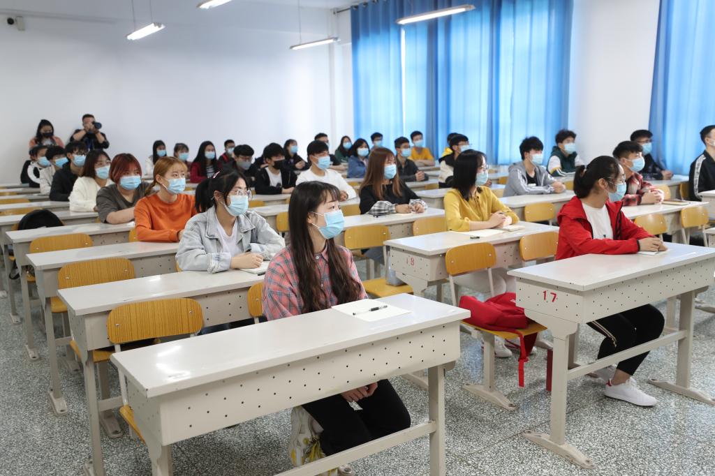 “全中国人民共同参与的中国抗疫战争,取得了无与伦比的伟大胜利。”5月8日上午,一场特殊的开学第一课在综合教学楼113教室进行。党委副书记、校长张传辉教授以线上为主、线下为辅,面向全校学生讲授了返校复学第一课——万人思政大讲堂,宣传党中央关于新冠肺炎疫情防控工作的重大决策部署和成效,讲授防疫抗疫一线的感人故事,引导师生坚定战胜疫情的信心,不断增强“四个意识”、持续坚定“四个自信”、坚决做到“两个维护”。工商管理2019级1、2、3班,物流管理2019级1、2班返校学生现场听课,广大同学通过钉钉平台听课。