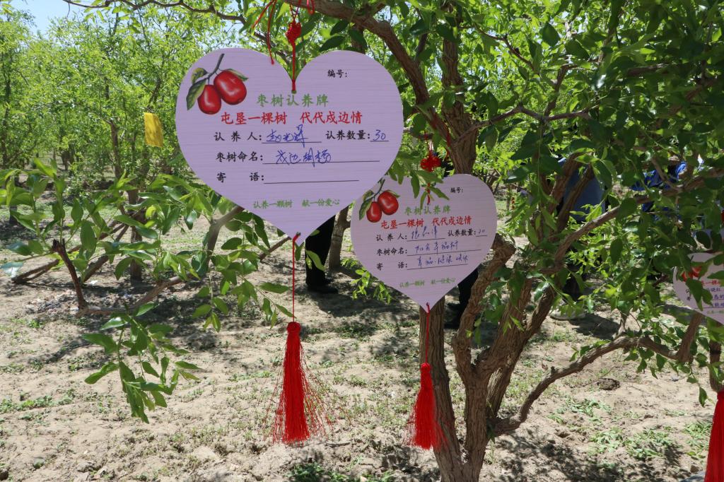 来到十三团17连1号示范园,赵光辉通过手机扫码注册,现场认养了30棵枣树,在认养牌上命名为“戍边胡杨”,激励学校广大师生积极参与到生态环境建设中,像胡杨一样,扎根边疆、献身边疆,坚定坚决履行兵团屯垦戍边职责使命,为实现新疆社会稳定和长治久安再立新功。