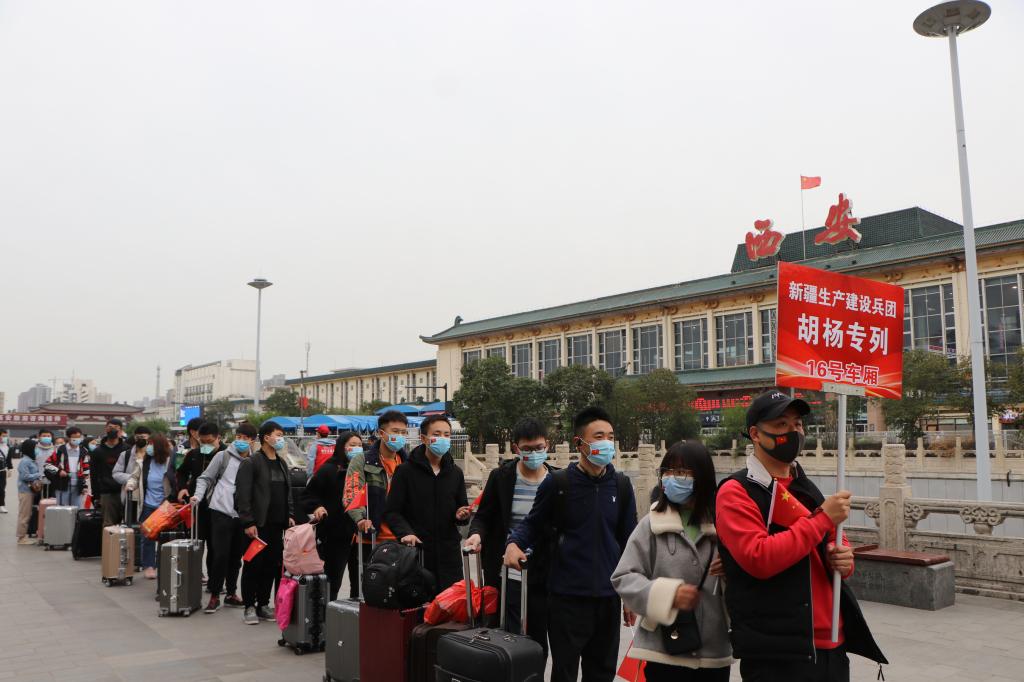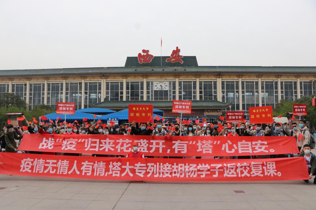 为了帮助疆外学生顺利返校,学校协调西安站安排加挂胡杨车厢运送学生返校复课。