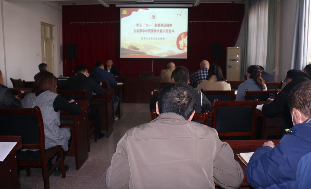 为深入学习贯彻习近平总书记“七一”重要讲话精神,11月10日下午,党委常委、副校长于军作学习贯彻总书记“七一”重要讲话宣讲报告,后勤保障中心、胡杨学院全体党员60余人听取报告。报告会在后勤党员之家举行。