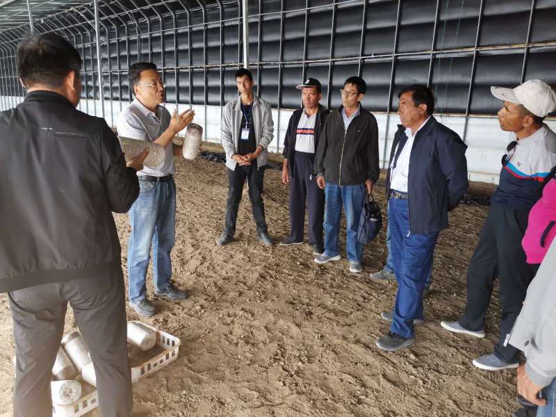 胡建伟教授前往该县开发区日光温室大棚,针对香菇、黑皮鸡枞菌种植管理开展技术培训,并对日光大棚食用菌发展提出合理化建议。