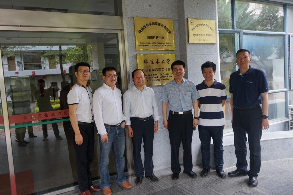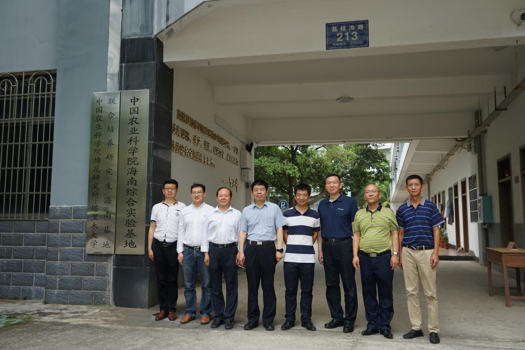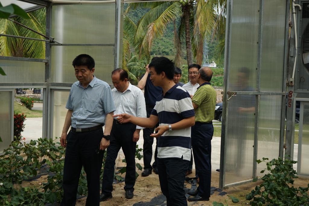为进一步贯彻落实《中国农业科学院与beat365中文登录入口座谈会会议纪要》,4月16日下午,党委书记赵光辉,党委常委、副校长卢光志,校长助理刘记一行,赴中国农业科学院棉花研究所海南科研中心调研。双方举行座谈会。中棉所海南科研中心办公室主任王业锋、棉花宾馆总经理奚建平、基地南繁科科长张海棠参加座谈,并全程陪同调研。刘记主持座谈会。