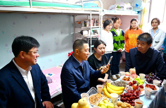 邵峰先后来到人文院学生公寓东区4号楼218宿舍、3号楼201宿舍,分别见到联系学生、学前教育2018级3班哈萨克族小伙拉神、维吾尔族姑娘娜迪热·阿布都艾尼同学及舍友们,心里特别高兴,与同学们亲切握手交谈,详细询问联系学生以及各族同学的思想学习生活等方面情况。
