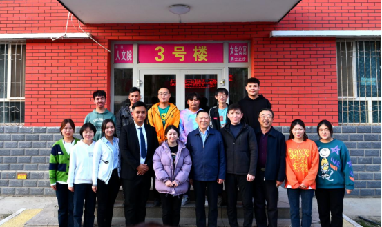 离开学生公寓时,邵峰与联系学生及同学们合影留念。