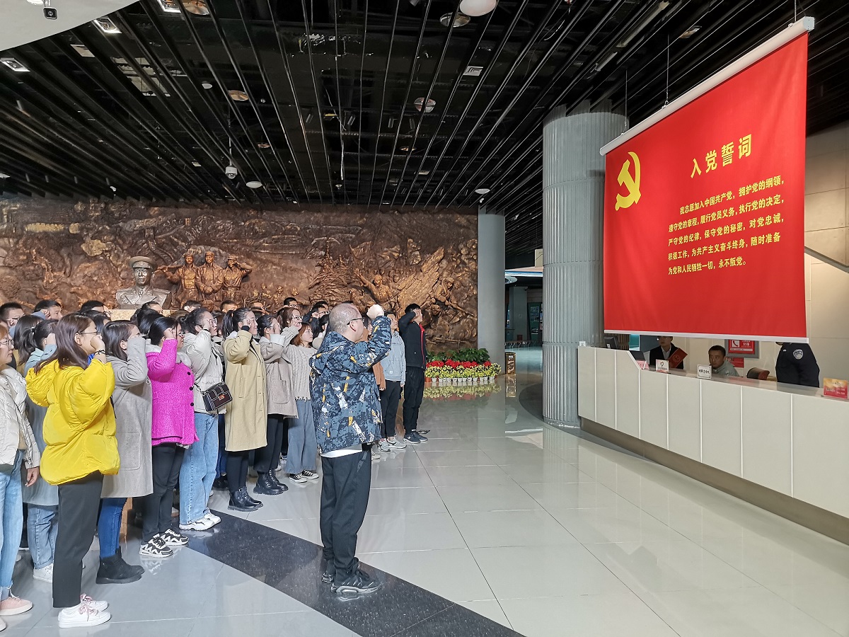 10月27日,经济与管理学院办公室教工党支部联合学生党支部全体党员80余人,到三五九旅屯垦纪念馆接受革命传统教育,重温入党誓词。