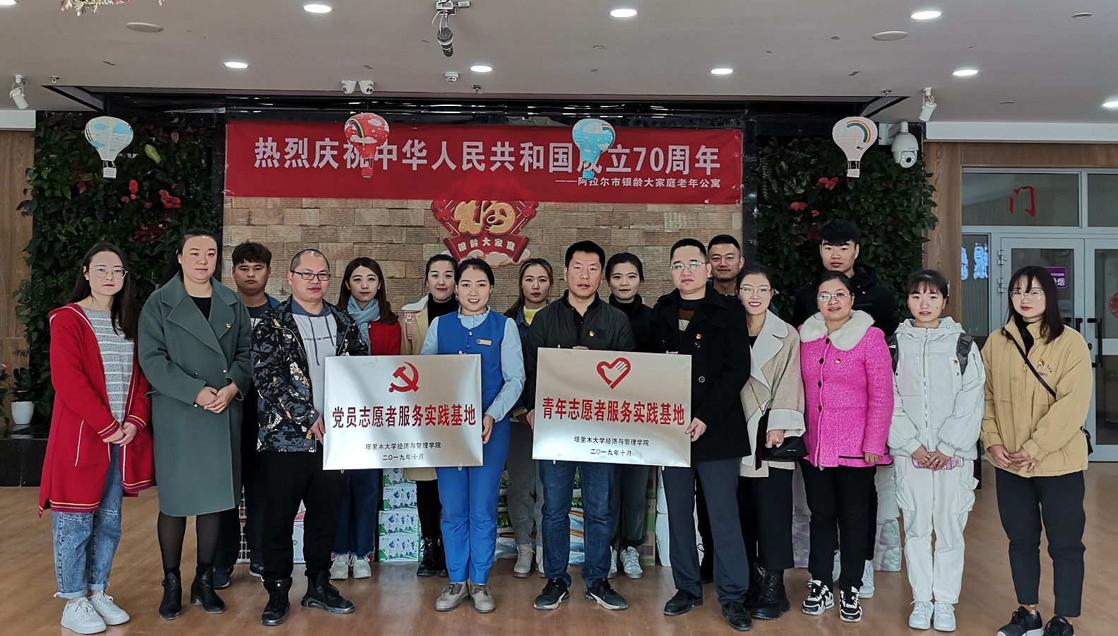 10月27日,经济与管理学院办公室教工党支部联合学生党支部全体党员志愿者携带生活用品来到阿拉尔银龄大家庭老年公寓,开展 “志愿服务、党员先行”主题志愿活动,为老人们送上温暖和关爱。并与阿拉尔银龄大家庭老年公寓共建“党员志愿者服务实践基地”和“青年志愿者服务基地”。