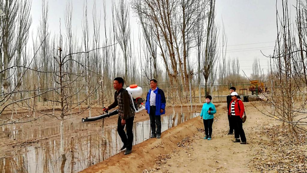 3月19日,在第一师11团6连“访惠聚”工作队和11团农业发展中心负责人带领下,特派员团队进一步指导落实种植户香梨主干形冬季修剪,发现问题现场指导解决。对香梨花前灌水、施肥进行指导,同时强调香梨花前清园、喷施石硫合剂防治病虫害的重要性。