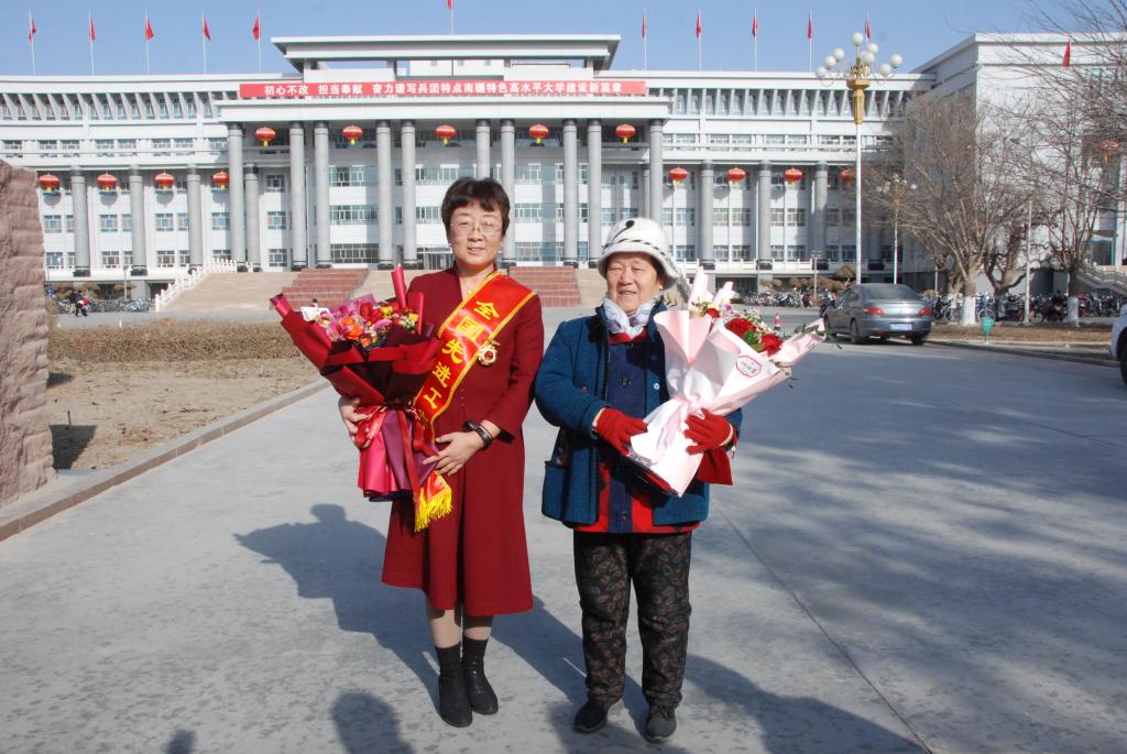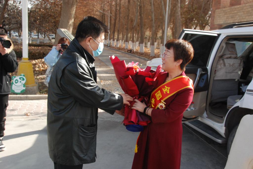11月27日中午,beat365中文登录入口在学校正南门前举行仪式热烈欢迎“全国先进工作者”吴翠云教授载誉归来。
