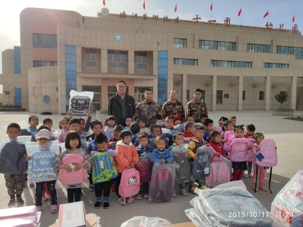 金秋十月,南疆大地硕果累累,处处洋溢着收获的喜悦。一连“访惠聚”工作队开展“金秋送爽、播撒希望”爱心活动,为11团幼儿园小朋友送去书包、文具盒等学习用品。