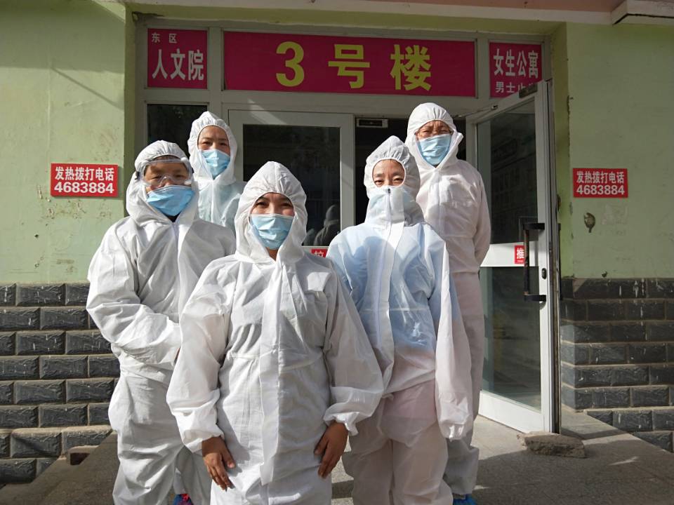 4月24日晚,住在阿克苏宾馆的学生陆续返校,按照学院要求,她连夜安排宿舍,又从晚上值守到凌晨7点多迎接学生。接下来的两天夜里,她都是这样坚守岗位。她说“我们穿上了防护服,戴上了袖章,就承担了这项使命。现在工作才刚刚开始,千万不能掉以轻心,大家共同努力,让学生安全返校复学。为此,我们的付出都是值得的。”