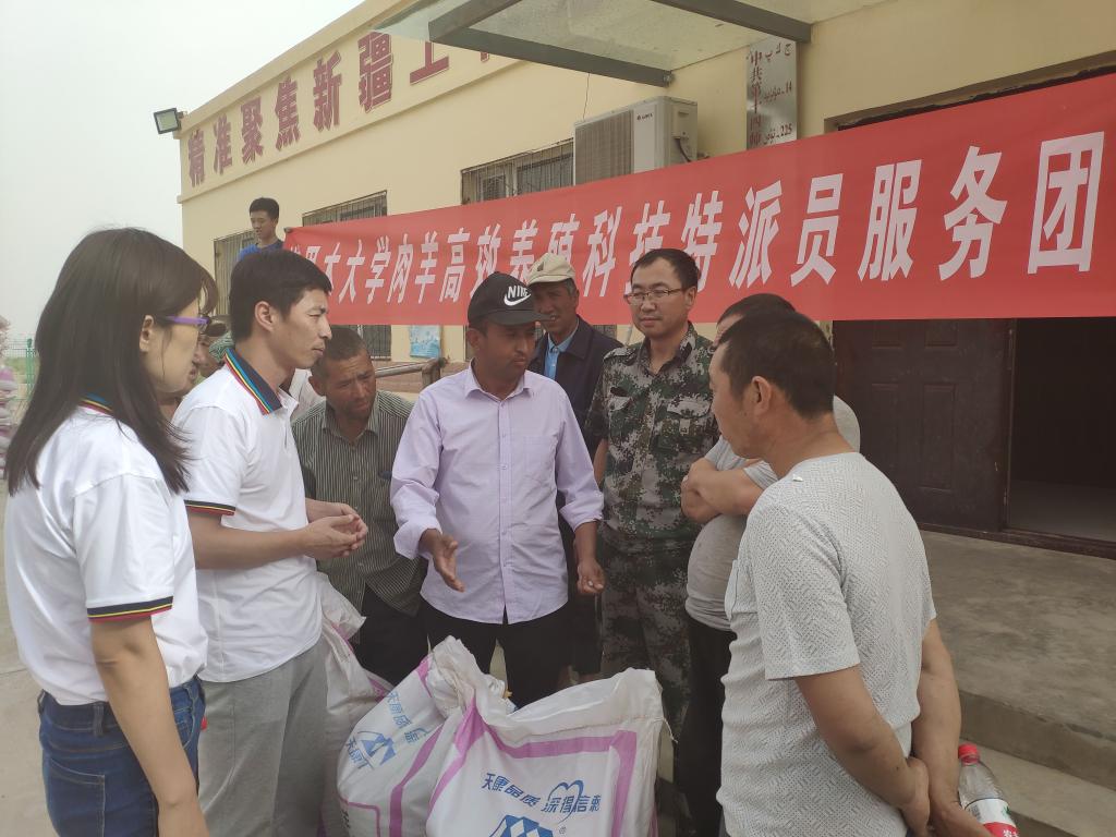 羊高效快繁团队负责人高庆华教授和羊科学饲养团队负责人许贵善博士,带领团队7名专家来到民航新村。走访了10余户肉羊养殖户,了解养殖情况,进行养殖技术培训,给养殖户传授科学养羊知识。