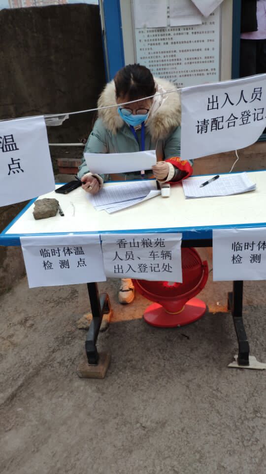 食品质量与安全2019级1班刘永华家在贵州省聚凤乡宝龙村,他每天坐在村门口临时搭建的棚子内,认真记录出入人员的详细信息。他说:“作为塔大学生,我们必须行动起来,为防疫助力,为武汉加油!”