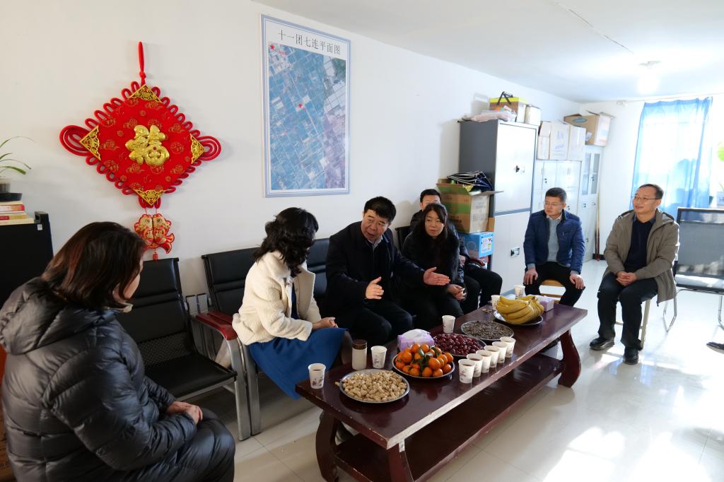 校领导先后来到十一团6连、7连和1连,与各工作队队员、连队“两委”一一握手,仔细询问连队、工作队一年的工作情况,深入了解队员们的身体生活情况,代表学校党委感谢他们的积极努力,鼓励大家要统筹好工作和生活,新年有新气象。