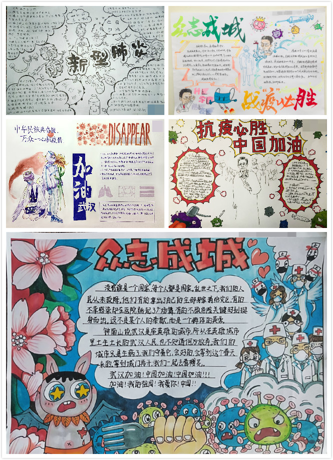 为做好疫情期间大学生网络思政工作,由党委学生工作部牵头,人文学院承办的“中华民族共奋战,万众一心抗疫情”为主题的手抄报征集比赛圆满结束。本次活动自3月2日起,收到作品161幅,进入决赛作品54幅,累计线上关注量达19501次。最终通过线上投票及评委线下根据内容表达、色彩搭配、构图创意等方面进行打分,综合评出一等奖1名、二等奖3名、三等奖5名、优秀奖10名。