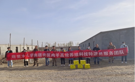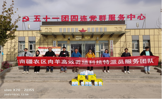服务团队在图木舒克市绿兴源养殖专业合作社开展技术指导,与“访惠聚”工作队和合作社成员,就肉羊品种合理利用、疫病预防控制和饲料配方体系等方面进行深入交流并提出解决方案,并赠送了消毒药品、保健药品和料草等物资。