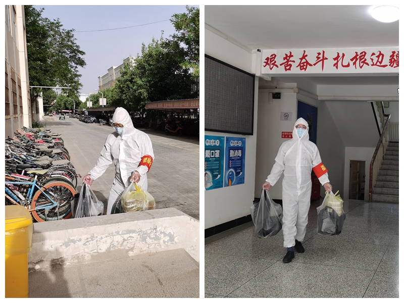 每次送饭的时候,他都会问一句:“能吃饱吗?”。简单的一句话透露着无限的关心。饭后收垃圾,测体温,取快递、心理疏导等一样也不少。