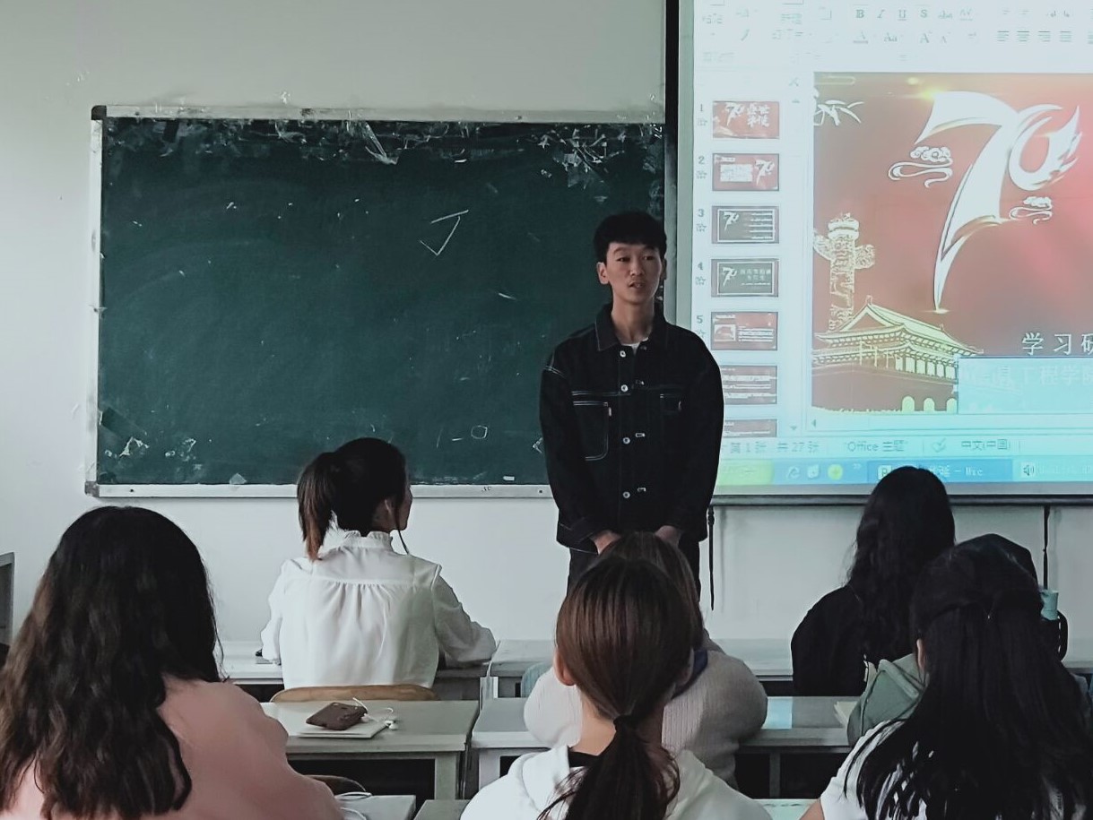 研究生支部朱航飞说,七十年筚路蓝缕,七十载风雨兼程,成就今日之盛世,中国未来可期,吾辈当自强,我将循着先辈的足迹,坚定不移地走下去,为创盛世中华贡献自己的力量。