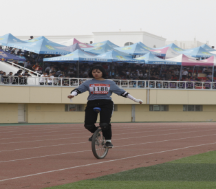 在问到学习独轮车的经历,他说:“我在大一时就开始学独轮车,虽然有些困难,但一直没有放弃,因为选择了一条路,就要一直走下去。”说到今后的打算,他说要尽自己最大的努力去参加后面的比赛,他除了独轮车8000米外,还报了独轮车1500米、4×100米接力和5000米马拉松。