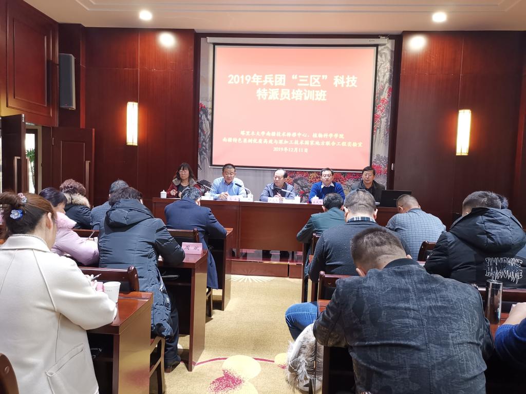 为提升兵团科技人员的业务素质和技能水平,加强南疆地区科技人才队伍建设,受兵团科技局委托,beat365南疆技术转移中心、植物科学学院、南疆特色果树高效优质栽培与深加工技术国家地方联合工程实验室,联合承办“2019年兵团‘三区’科技人员中长期培训”。培训工作于12月10日至12月25日在阿拉尔市塔河花园酒店举办,培训对象为南疆四个师市的21名基层科技人员。