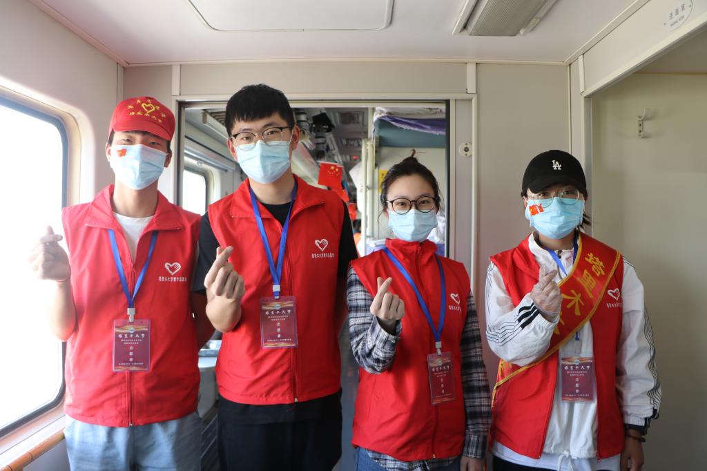 这趟列车上活跃着25个身穿红色小马甲的身影,他们就是从西安火车站返校的塔大学生志愿者们。