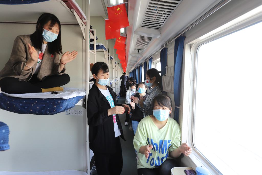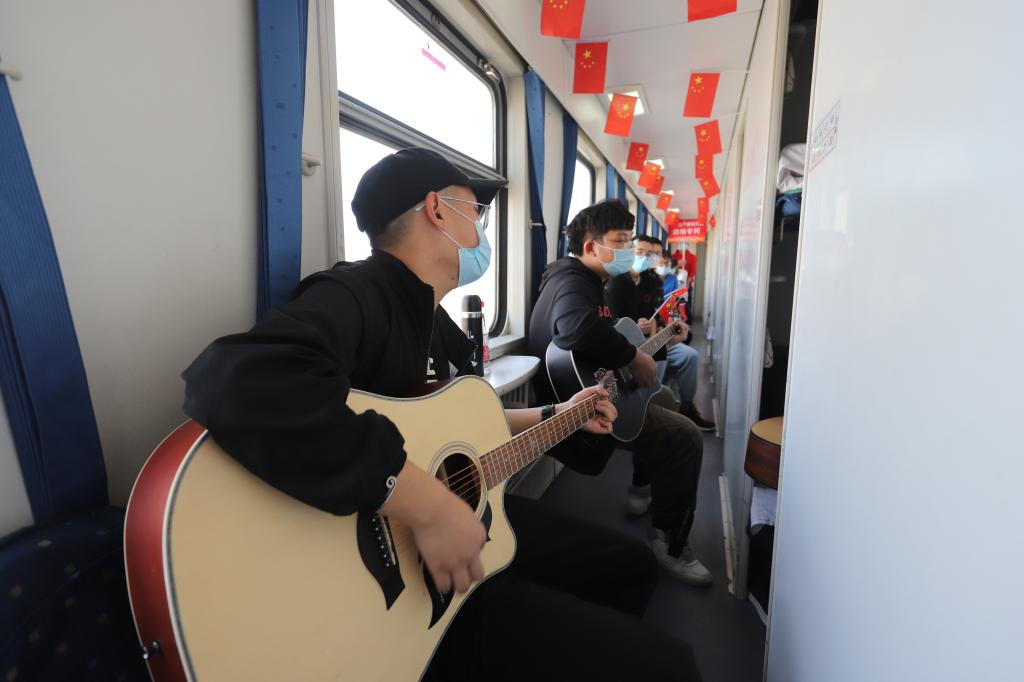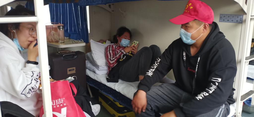 从兰州站到阿克苏站,同学们通过唱歌、看书、聊天等,让这段旅程更加丰富多彩、更加有意义。每个人都自觉服从管理,严格遵守纪律,积极配合随车老师、医务工作者、防疫工作者、乘务人员做好返校各项工作。(文/杨宝仁 摄/赵澳)