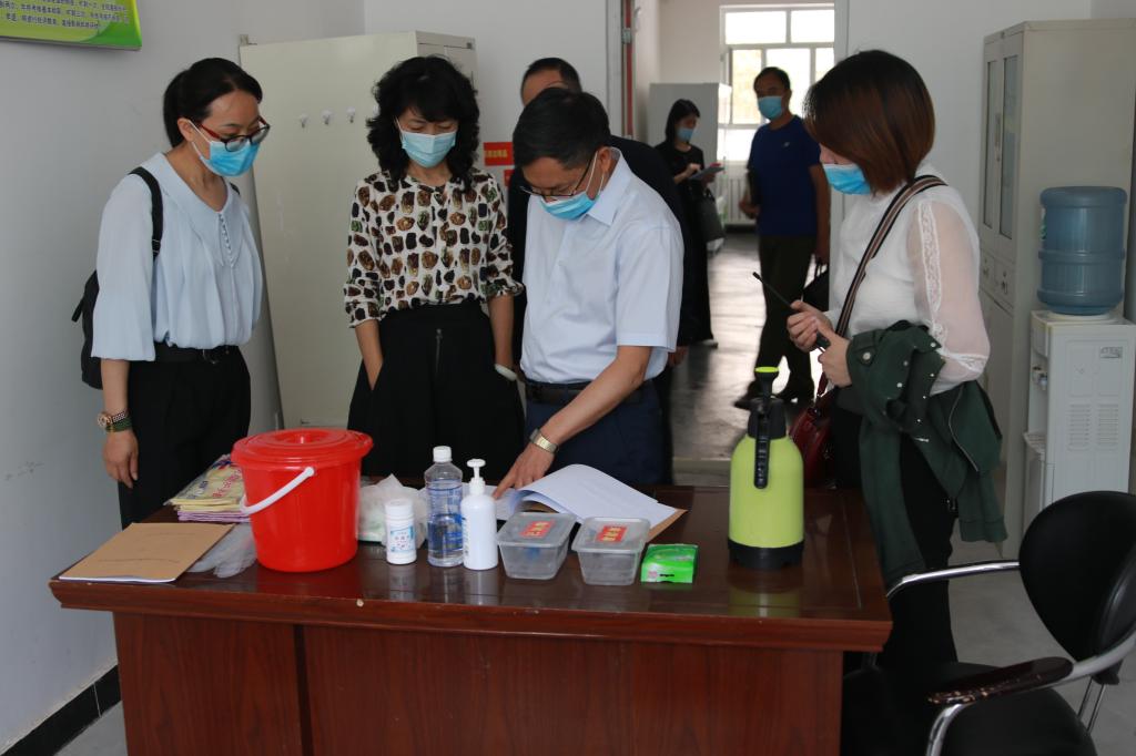 5月22日上午,兵团教育局党组书记、局长黎兴平、兵团教育局直属机关党委专职副书记金亚丽、兵团教研室处级干部何贵新,兵团疾控中心卫生专干陈慧,来校督导检查2020年春季开学复课疫情防控和安全稳定工作。