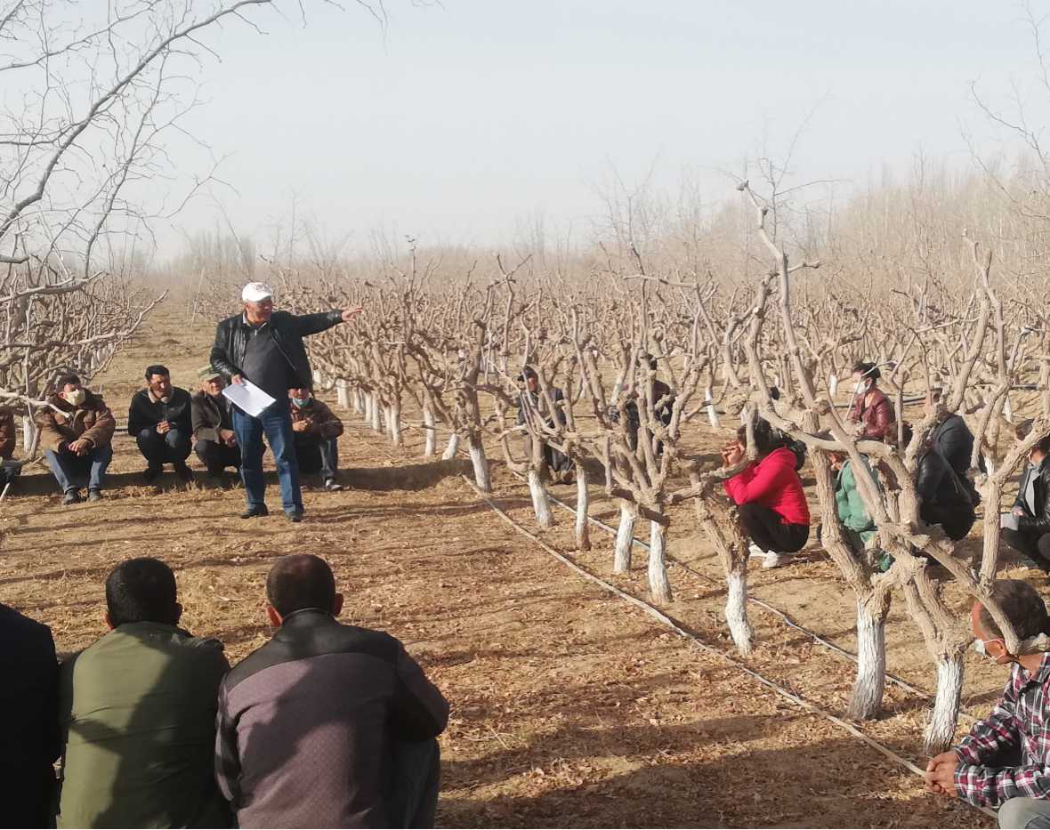 张琦教授在皮山农场9连讲授枣树春季修剪技术 |
