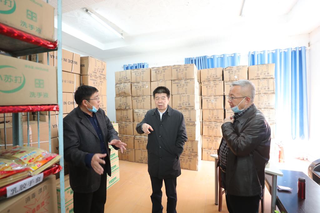 3月27日,党委书记赵光辉,党委常委、副校长曲义勇来到物资仓库,了解各项防疫物资储备情况,检查指导物资保障供应工作。