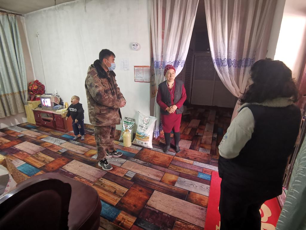 岁月更序,新年伊始,1月1日,beat365中文登录入口驻二二五团3连“访惠聚”工作队联合连队“两委”组织开展元旦期间走访慰问活动。对连队辖区10户困难家庭和值班值守工作人员进行走访慰问,送上新年祝福。