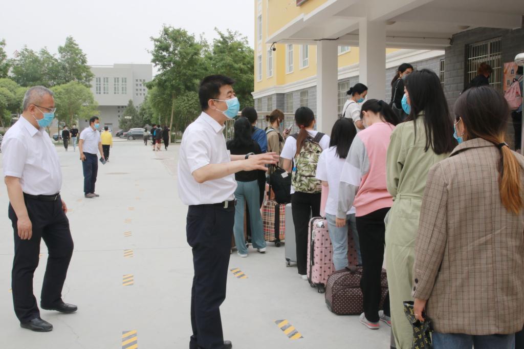 为确保疆内学生安全健康顺利返校复课,5月10日中午,beat365中文登录入口党委书记赵光辉,党委副书记、校长张传辉,党委副书记、纪委书记单洪山,党委副书记张爱萍,党委常委、副校长卢光志,副校长张利莉,党委常委、副校长曲义勇、于军、石长青,以及全体处级干部及教师代表,在学校南门、学生公寓前迎接疆内返校学生的到来,现场指挥协调返校学生交通疏导、信息登记、健康检测、消杀毒、入住手续办理、餐饮供应等各项工作。