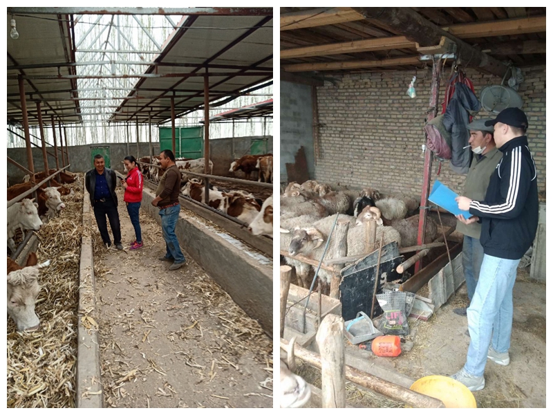 买力艳木˙赛买提同学在为新和县玉奇喀特乡尤勒滚协海尔村新生合作社社员宣讲。“因为这个养殖场是我家的,所以报考了动物医学专业,经常把在学校学习的专业知识,应用到养殖场中。这个学期王时伟老师线上给我们讲授《兽医法律法规》课程,鼓励我们线下宣传法律法规。除了宣传养殖场动物防疫条件,我还向大家宣传强制免疫、检疫申报、粪便无害化处理、兽药使用等方面的规定,让养殖户学到更多法律知识。”(图1)