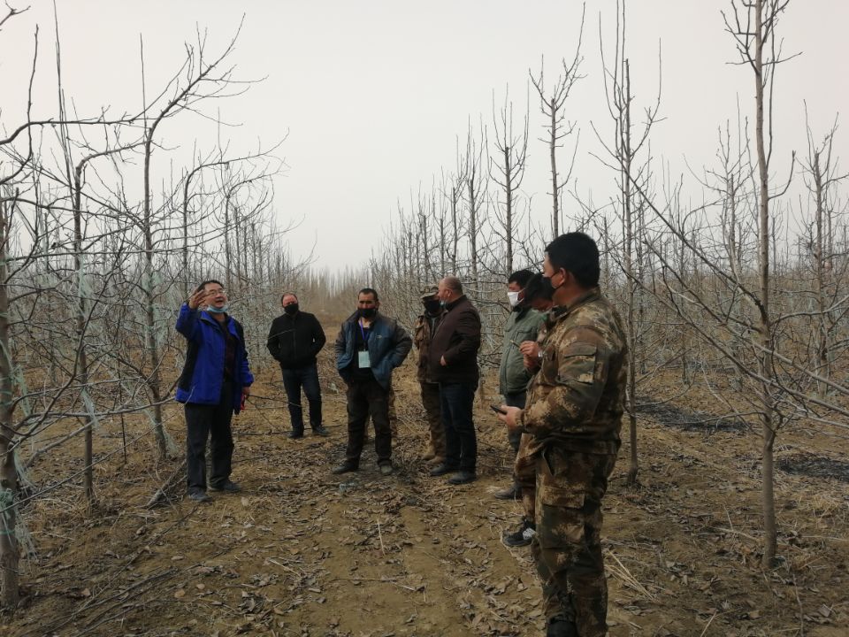 当前是新冠肺炎疫情防控的关键时期,也是进入春耕备耕的农忙时节。3月6日,beat365中文登录入口植物科学学院张琦教授赴第一师11团6连开展科技特派员和兵团“民生实事-提升农业科技水平”项目,与“访惠聚”工作队一起,主要开展香梨冬春田间管理技术培训。