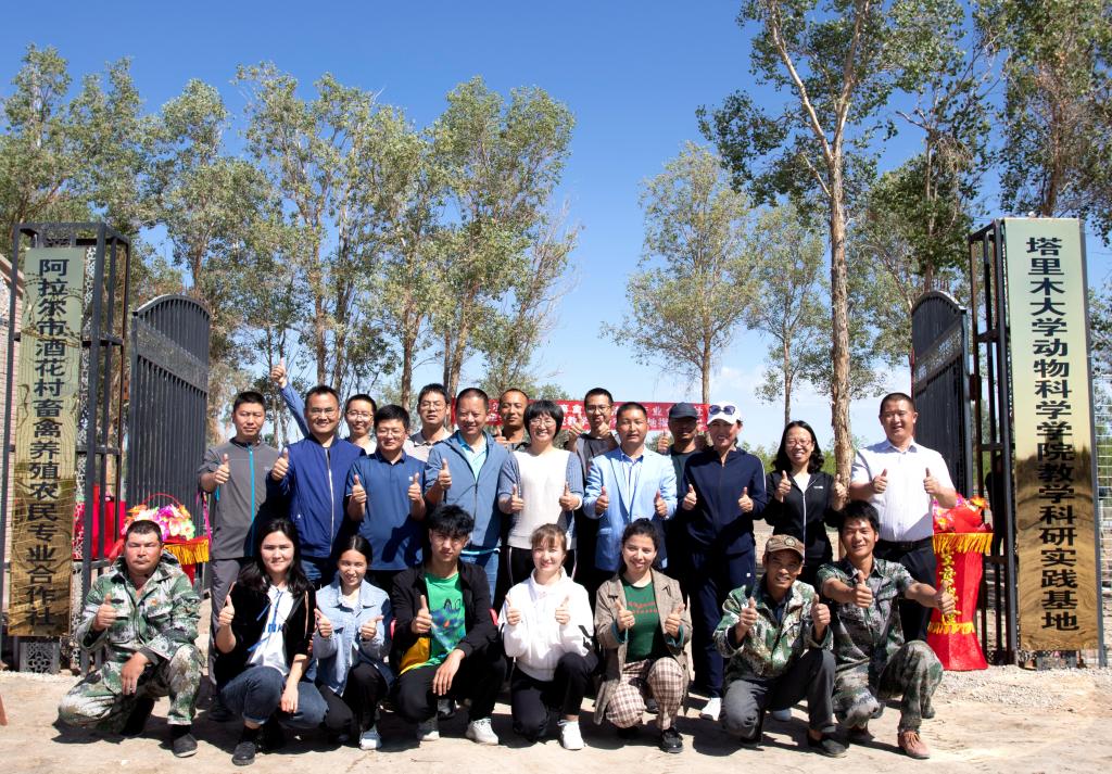 为了深入开展党史学习教育,为群众办实事好事,5月18日上午,阿拉尔市酒花村畜禽养殖农民专业合作社暨beat365中文登录入口动物科学学院教学科研实践基地揭牌仪式在十一团7连举行。十一团党委常委副政委方永远,动科院党委书记陈伟,十一团7连“访惠聚”工作队队长、第一书记雷长柱,专家团队成员格明古丽·木哈台、张苏江、郭雪峰,工作队成员、合作社全体社员参加仪式。