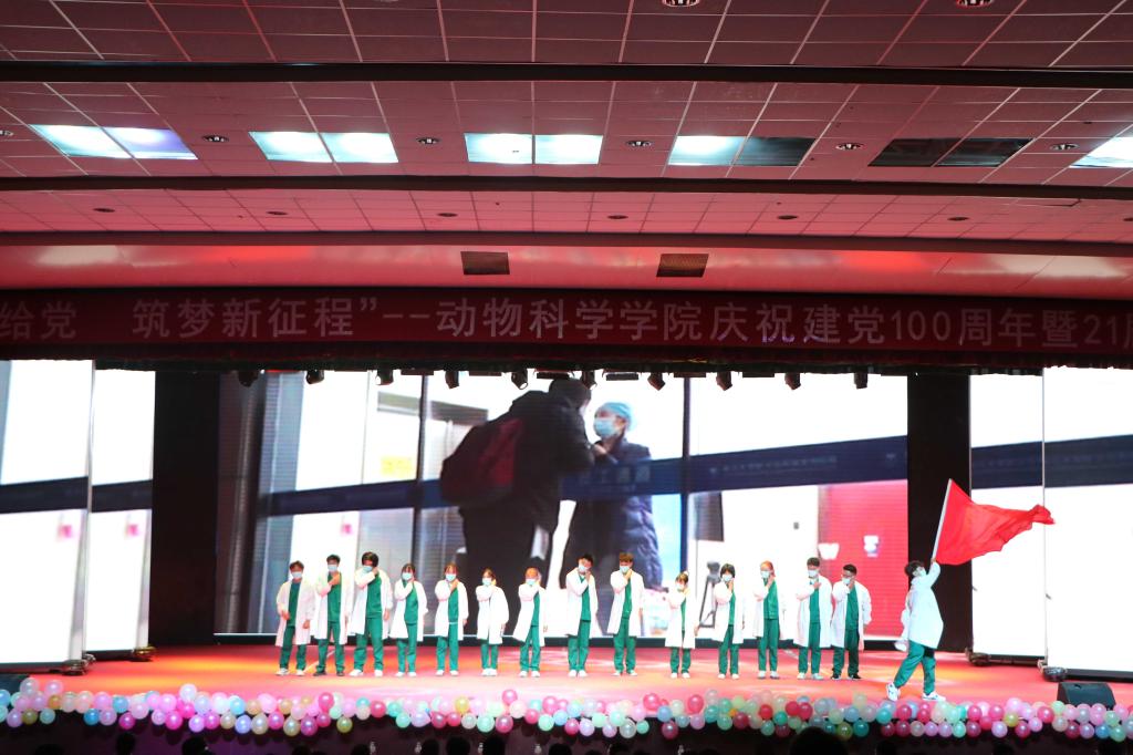 为推进党史学习教育,庆祝建党100周年,欢送2021届毕业生,5月29日晚,动科院在行政楼B座报告厅举办“青春献给党,筑梦新征程”文艺晚会。学院党委书记陈伟、党委副书记魏晓柳、毕业班班主任代表、学院老师代表及全体毕业生参加。