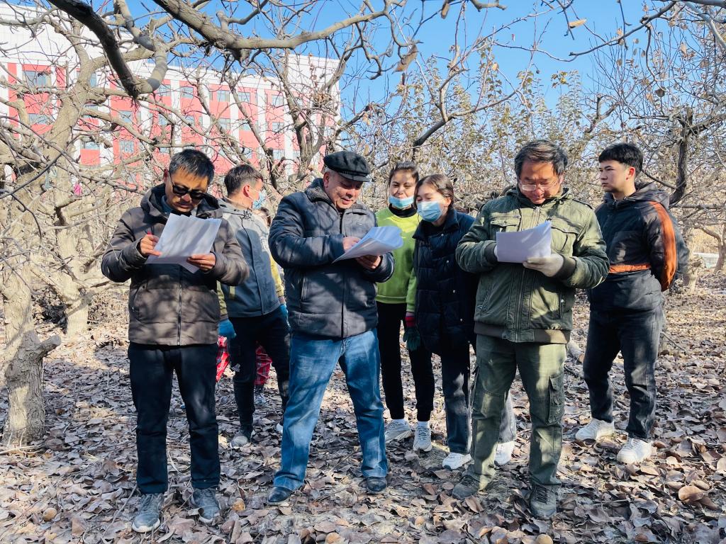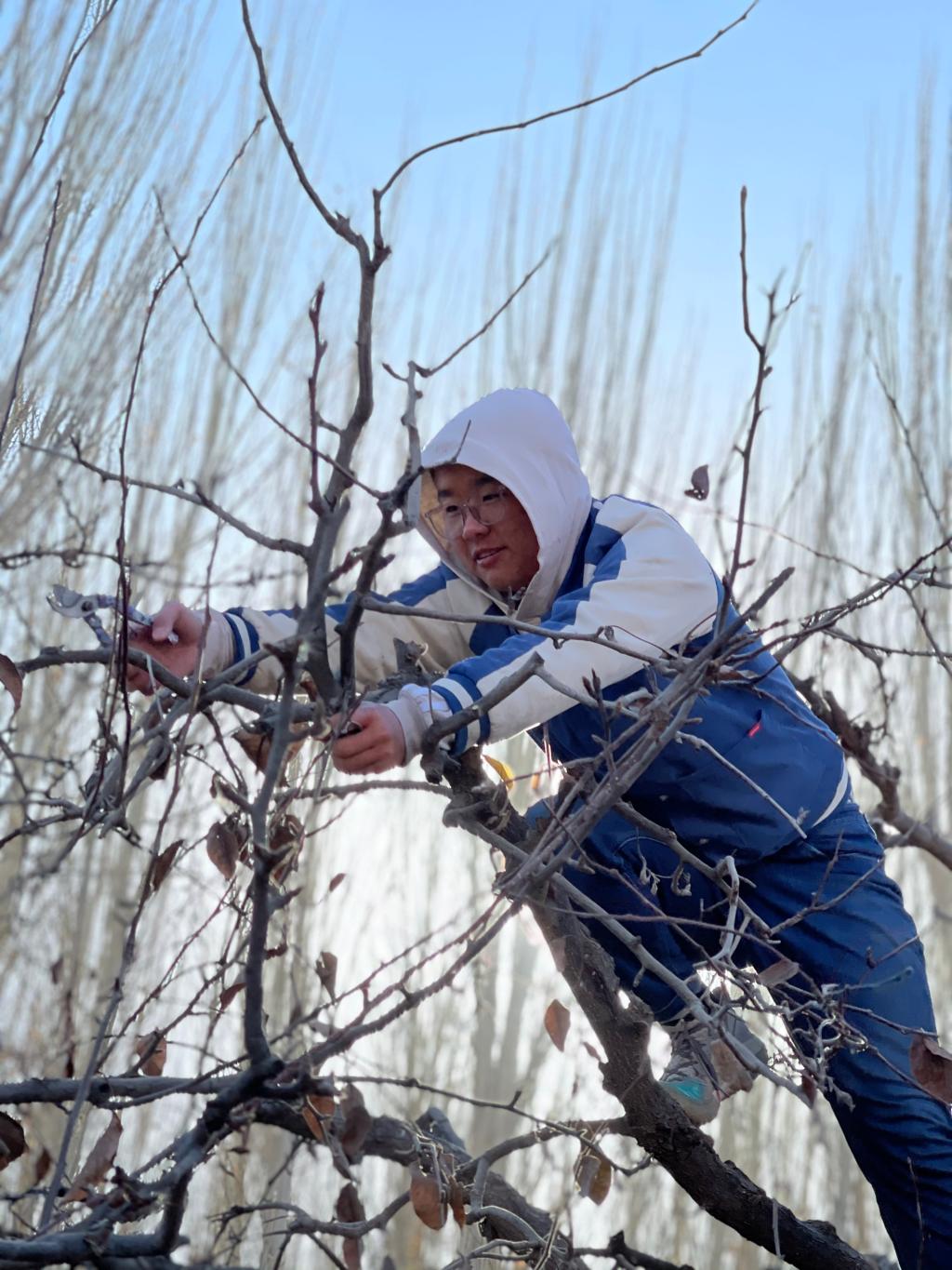 冬季修剪竞赛由张琦老师、库热什·卡迪尔老师以及王振磊老师三位教师组成评审团,为现场每位同学进行指导并评分。
